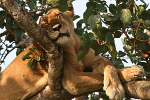 Queen Elizabeth national park,Uganda’s second-largest park. A Uganda safari to Queen Elizabeth offers you best game viewing and boat cruise experience. Game driving in the open plains of the park looking out for elephants, buffalos, Topis, waterbucks, warthogs, Impalas, Uganda kobs, lions, Leopards and hippos among others. a launch cruise at kazinga channel offers you best views of birds on the river banks, wildlife in the park and the neighboring communities. The park is also home to tree-climbing lions. Tree Climbing Lions in Ishasha Sector in Ishasha sector south of the park. Join the experimental lion tracking experience in Kasenyi plains, which together make your safari a complete package rewarding you with a memorable experience.
